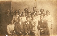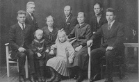 1920 luvulla Venekoskelta muutti useita perhekuntia Kymiin. Tässä kuvassa vasemmalta Ville , Aapel, Vilho, Iida, Vieno Minkkinen, Matti Virtanen, Anna Matilainen, Väinö Oksanen ja Otto Matilainen.