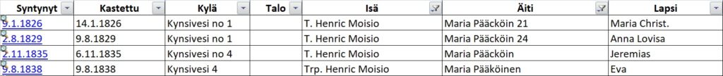 Maria Pääkkösen syntyi 6.11.1805. isä Matts Pääkköin ja äiti Margaretha Michelsdr.