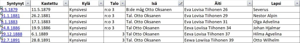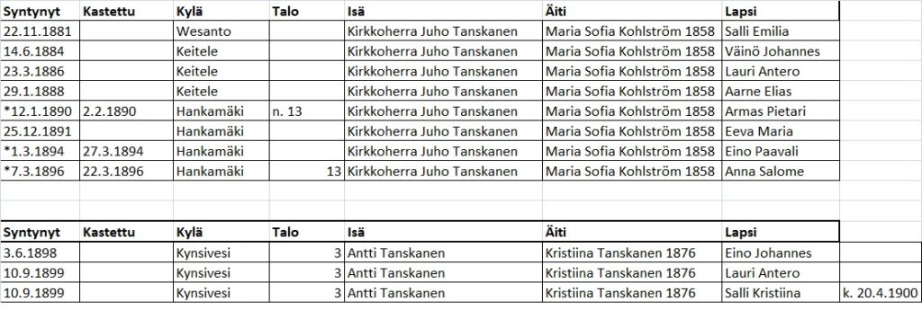 - 1901-1903 Antti Tanskanen s. 1874, vmo Kristiina Tanskanen s. 1876