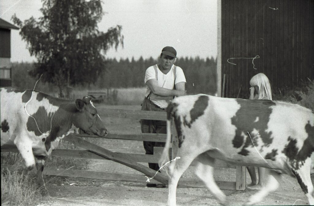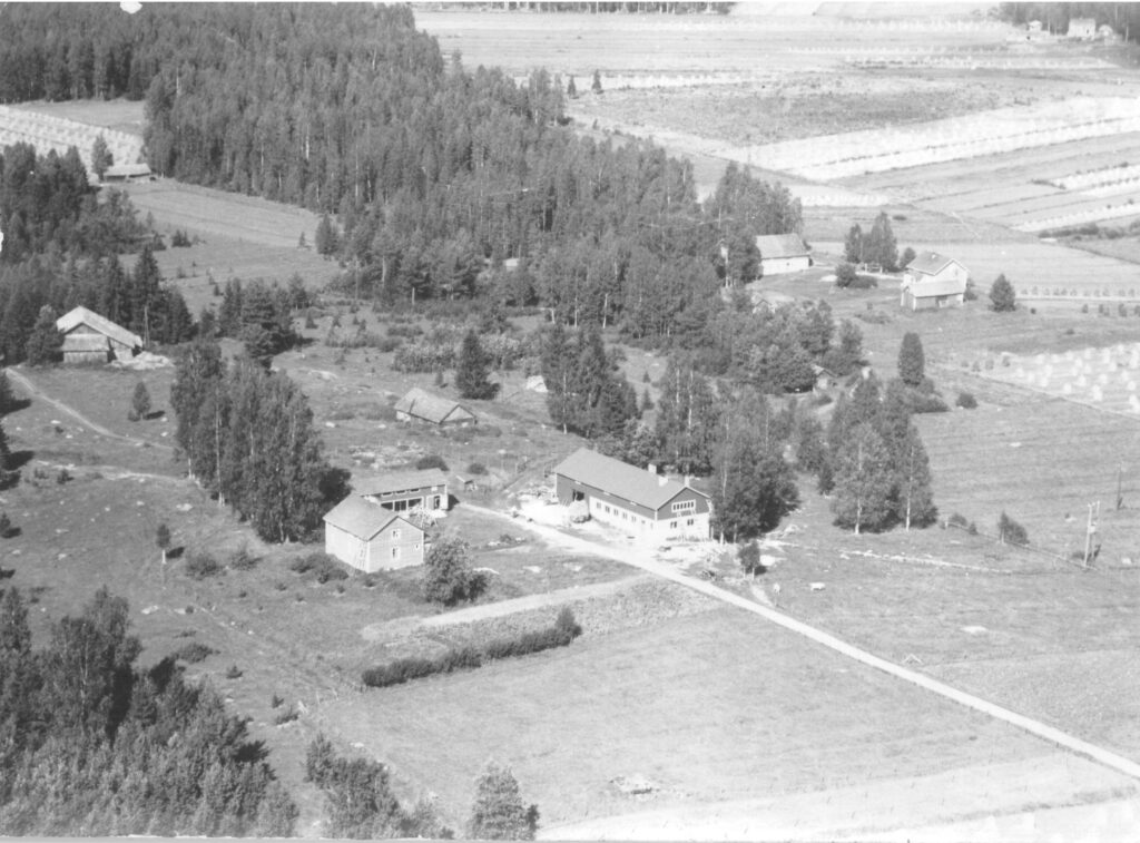 Moision tila. Vanha rakennus on jo purettu, riihi ja vanha navetta ovat vielä paikoillaan