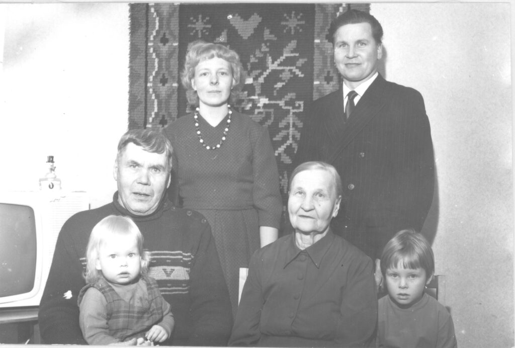 Otto ja Anna, sekä nuori perhe Leena, Pentti, Sirpa ja Arja.